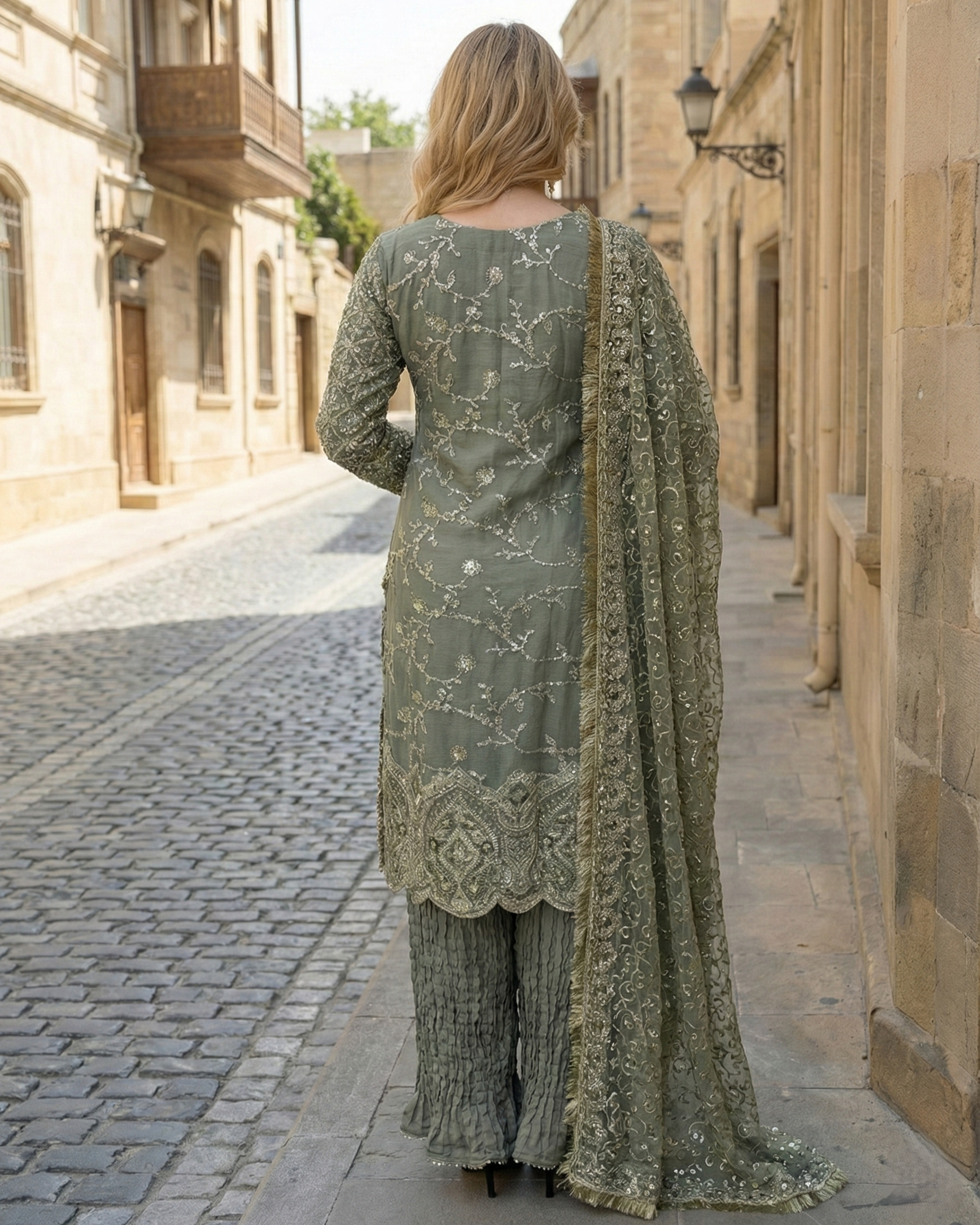 Discover the perfect look. Its soft chiffon fabric, delicate embellishments, and graceful silhouette create an elegant ensemble perfect for festive gatherings and evening occasions. Designed for comfort and style, it brings refined charm to your wardrobe.