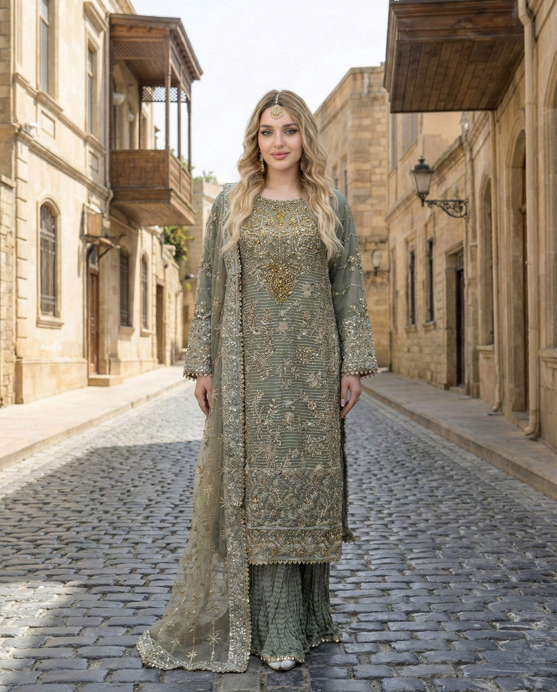 Sharara: Grip sharara designed with a graceful flare, providing comfort and an elegant silhouette.
