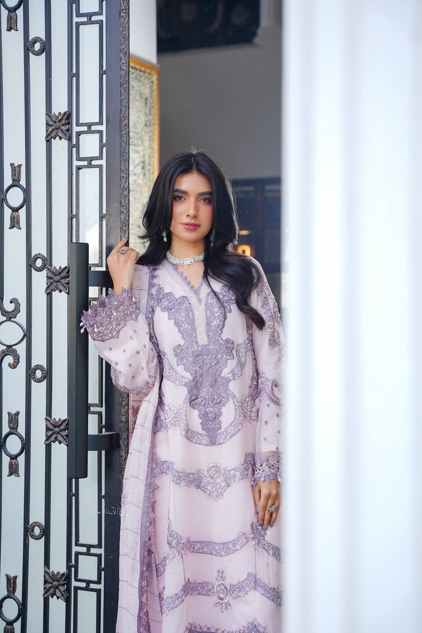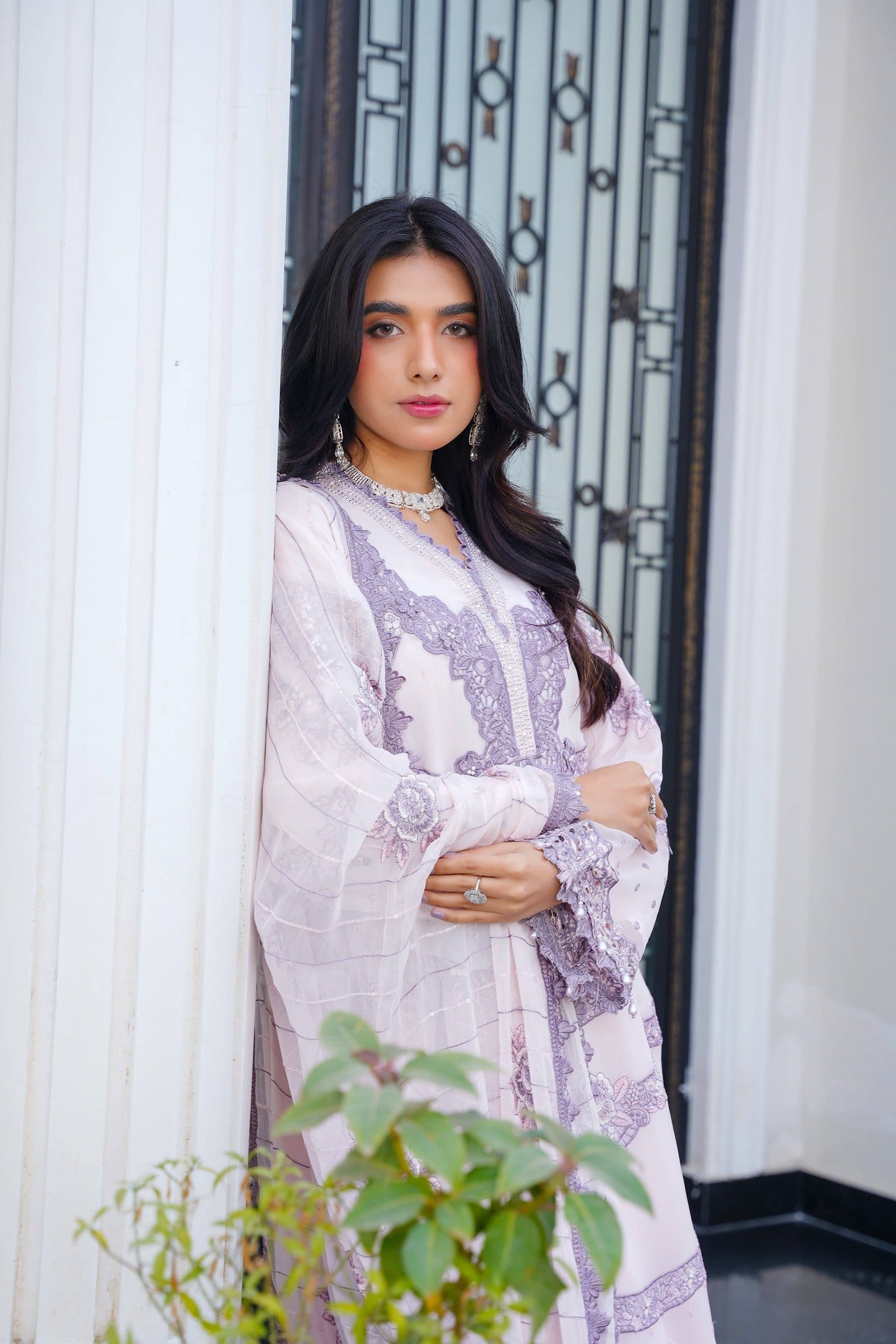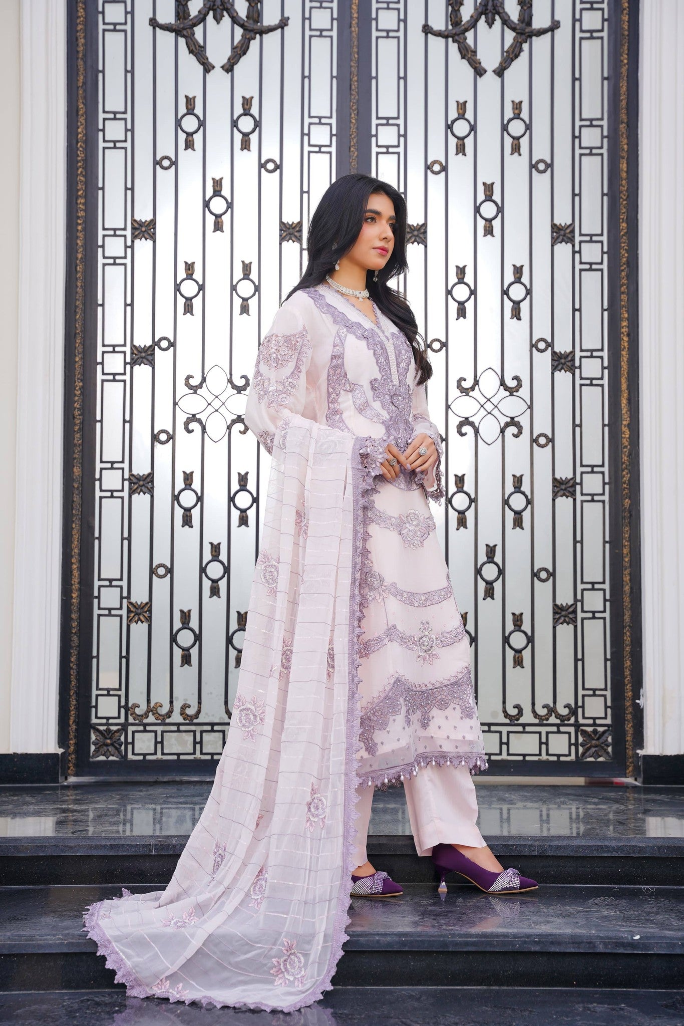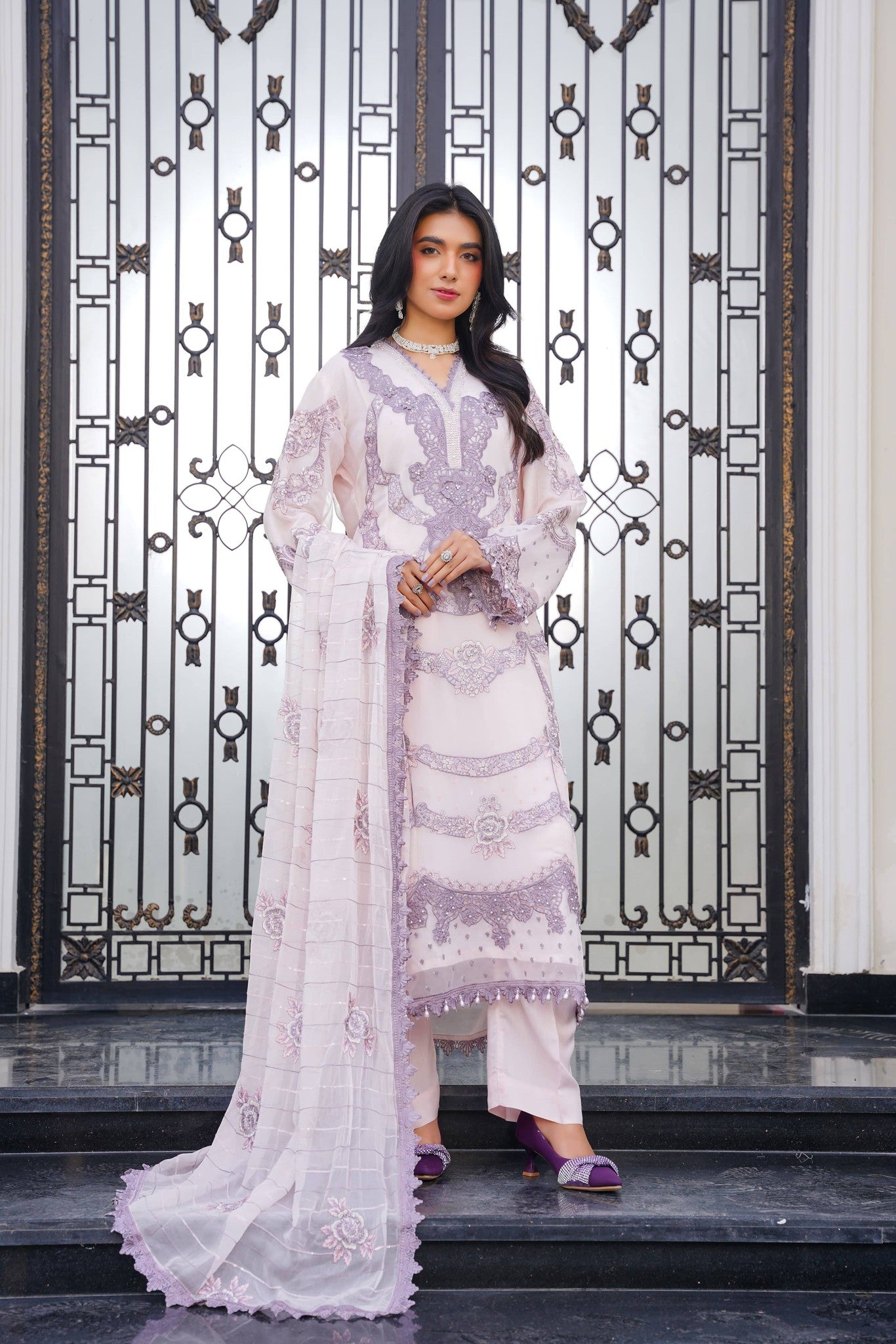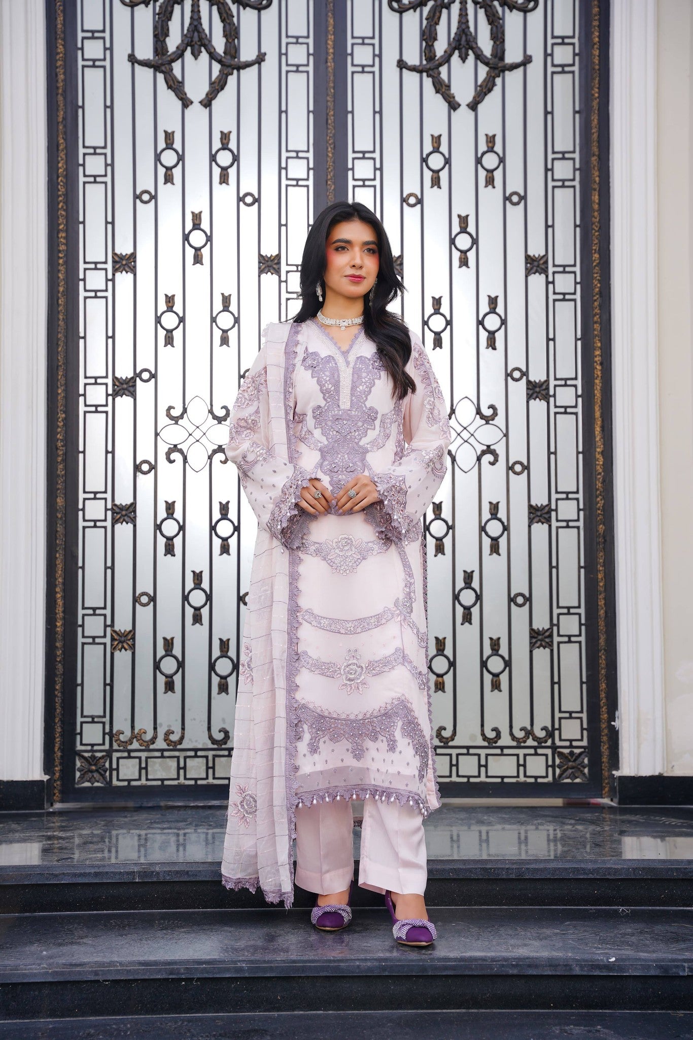 Dupatta: Chiffon dupatta completing the look with a soft, elegant drape.
