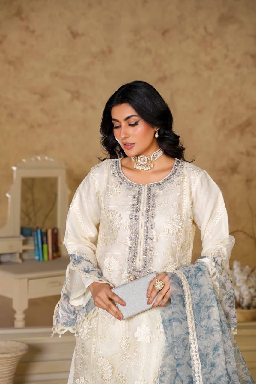Dupatta: Organza dupatta designed to drape gracefully and enhance the outfit’s elegance.