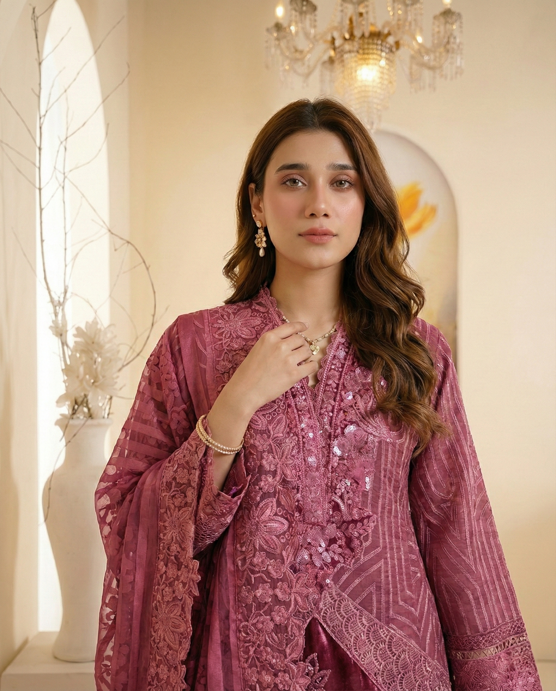 Dupatta: Organza dupatta offering a soft, sheer flow that enhances the outfit’s elegance.
