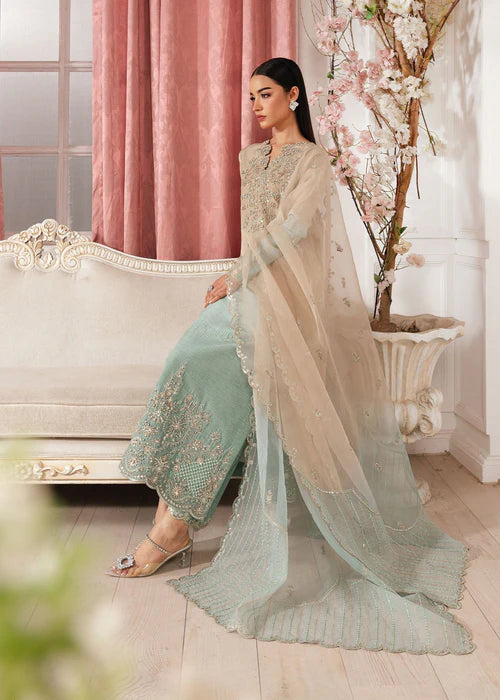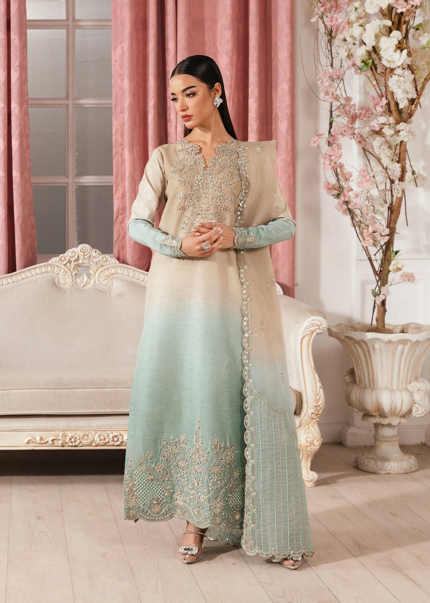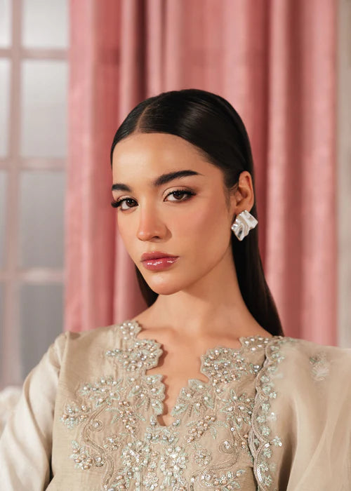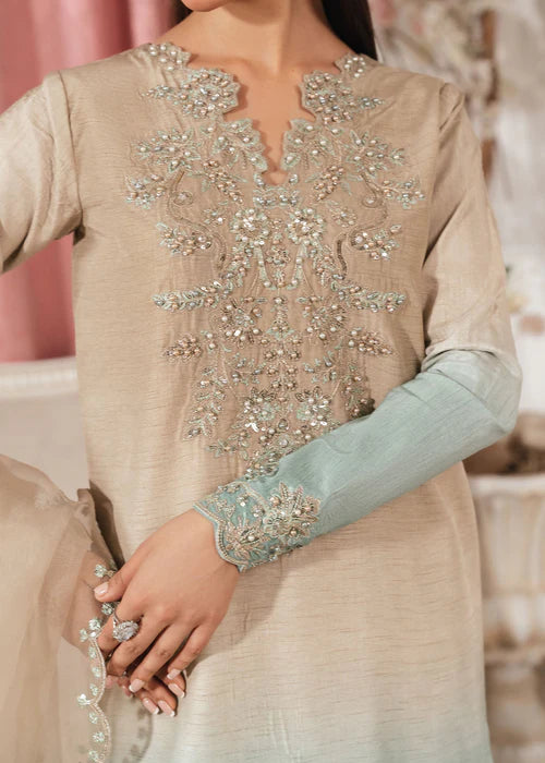 Discover the perfect look. Its intriguing details make it a must-have for any wardrobe. Designed for comfort and style, you'll feel confident and fashionable every time you wear it. Upgrade your look today with this outfit. This 3PC outfit features a graceful raw silk shirt paired with a flowing organza dupatta and matching trousers, offering a balanced blend of luxury and ease — ideal for festive events and elegant evenings.