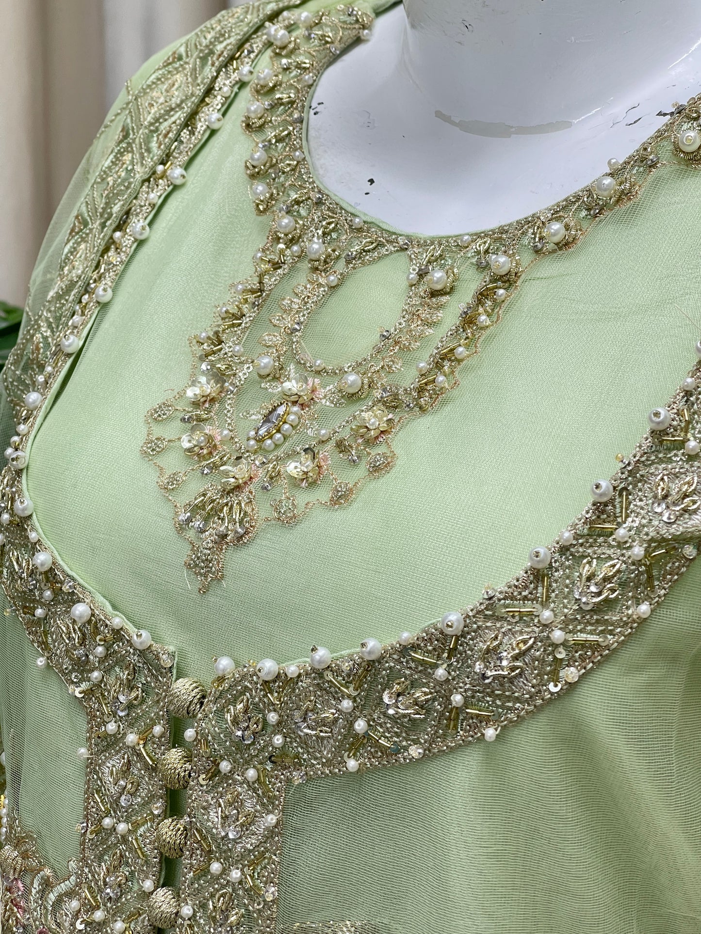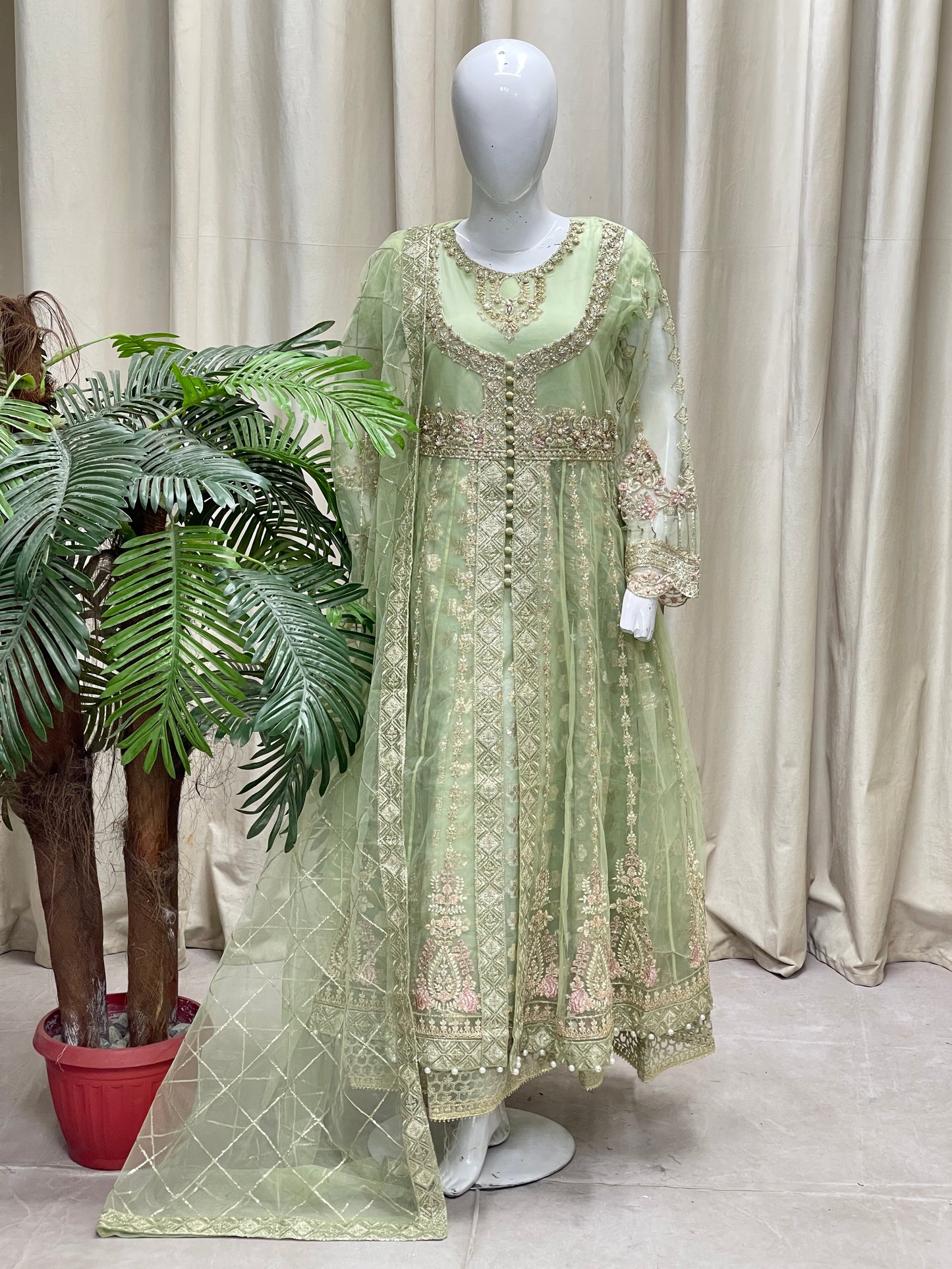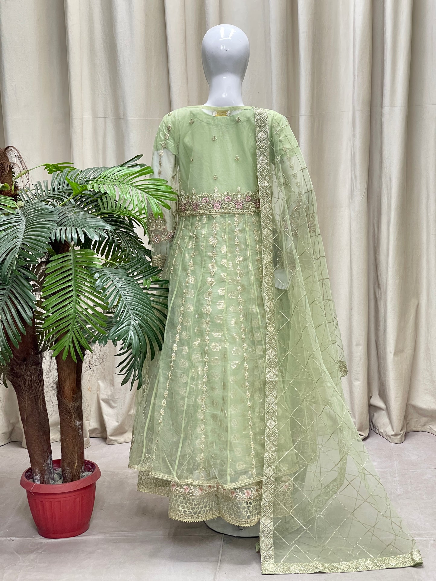 Get ready to turn heads in our stunning ZR 2339 3PC Ready To Wear ensemble! This set includes a flowing Net Gown, elegant Broshia Organza Inner, and comfortable Grip Trouser, all topped off with a Net Dupatta. Perfect for any occasion, this outfit will make you feel confident and stylish.