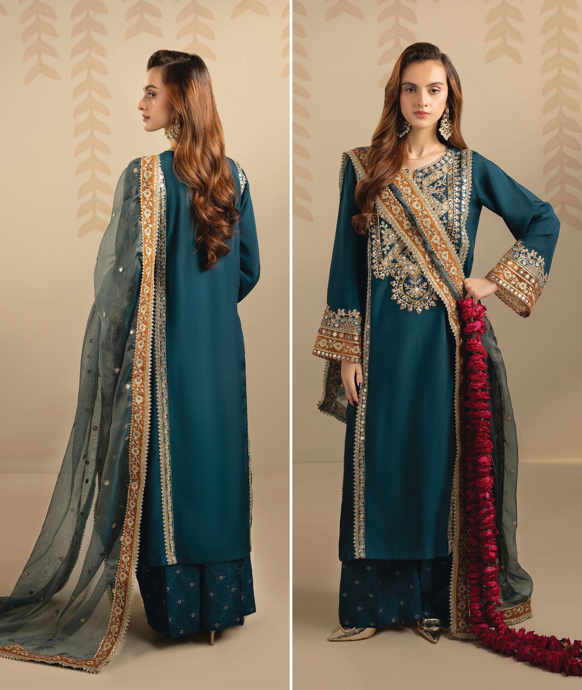 Dupatta: Matching silk dupatta completing the graceful ensemble